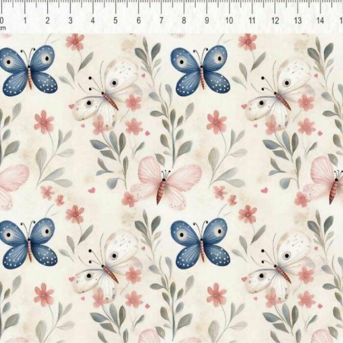 Tecido Tricoline Digital Amandita Borboletas e Flores