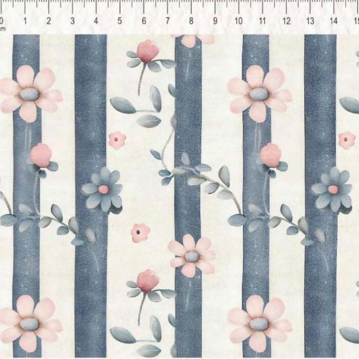 Descrição Tecido Tricoline Digital Amandita Flores e Listras
