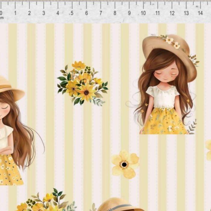 Descrição Tecido Tricoline Digital Amarelinha Menina 01