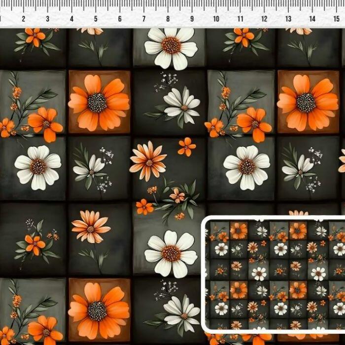 Tecido Tricoline Digital Amber Wings Floral Patch