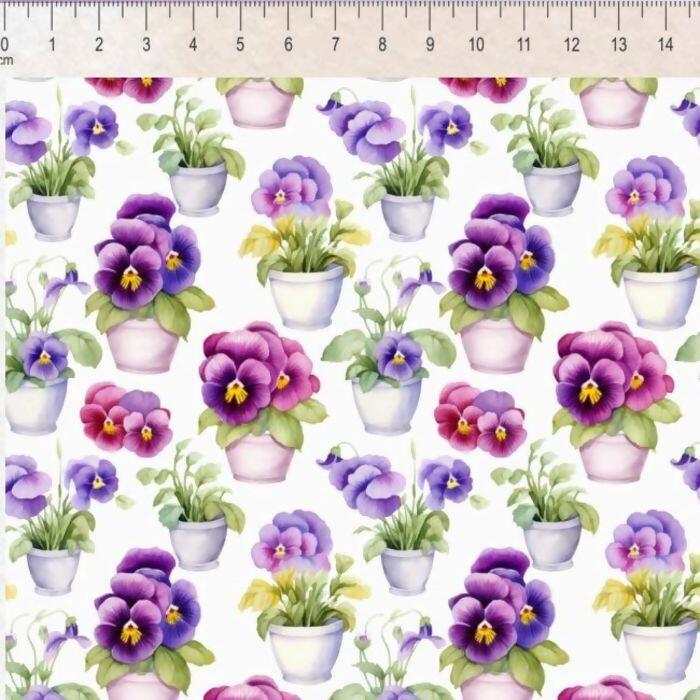 Descrição Tecido Tricoline Digital Amor Perfeito Flor 02