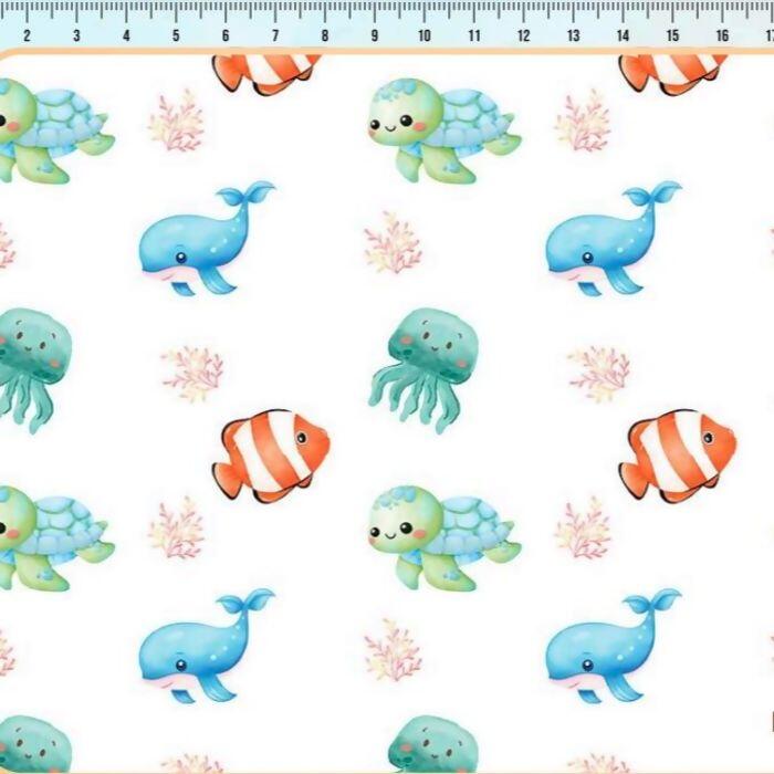 Descrição Tecido Tricoline Digital Animais Marítimos