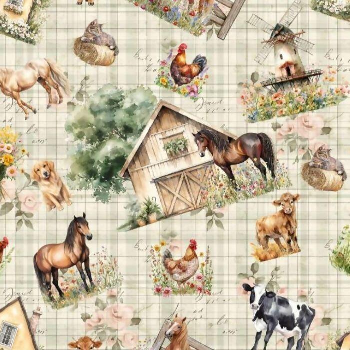 Descrição Tecido Tricoline Digital Animais na Fazenda