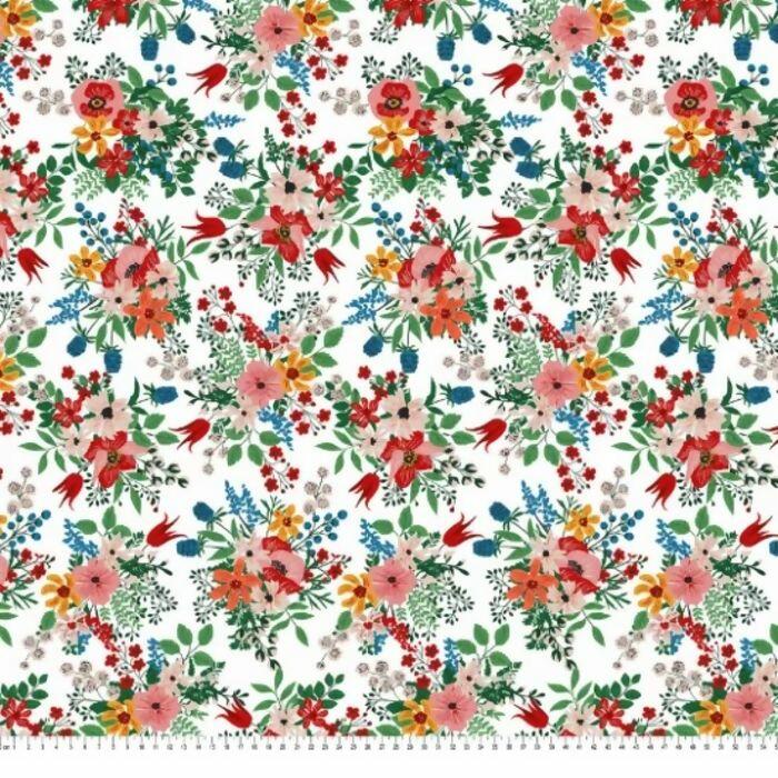 Descrição Tecido Tricoline Digital Arranjos Fundo Branco