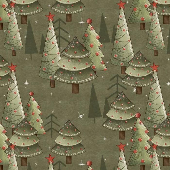 Descrição Tecido Tricoline Digital Árvores Natal Fundo Verde