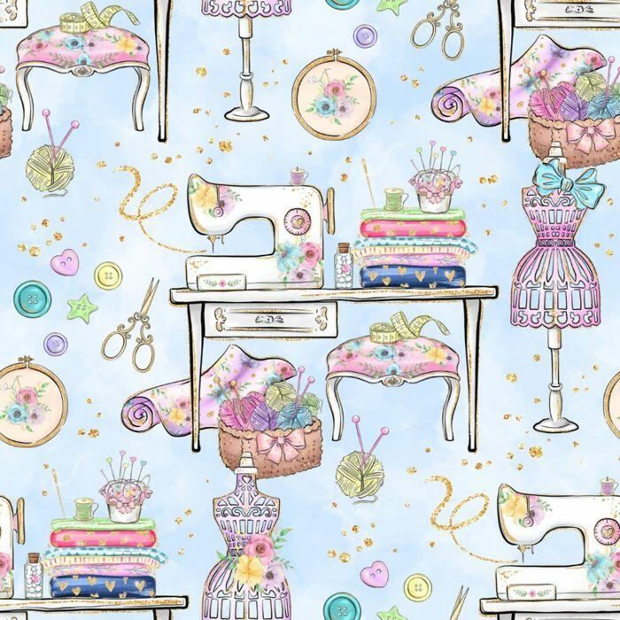 Tecido Tricoline Digital Atelier Fundo Azul Claro