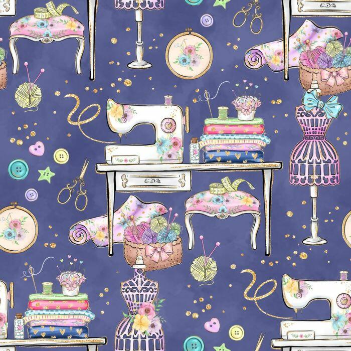 Tecido Tricoline Digital Atelier Fundo Índigo