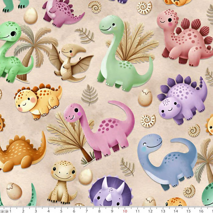 Descrição Tecido Tricoline Digital Aventuras Dinossauros