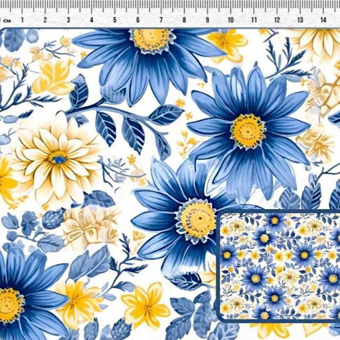 Descrição Tecido Tricoline Digital Azulejos Floral Bromélias