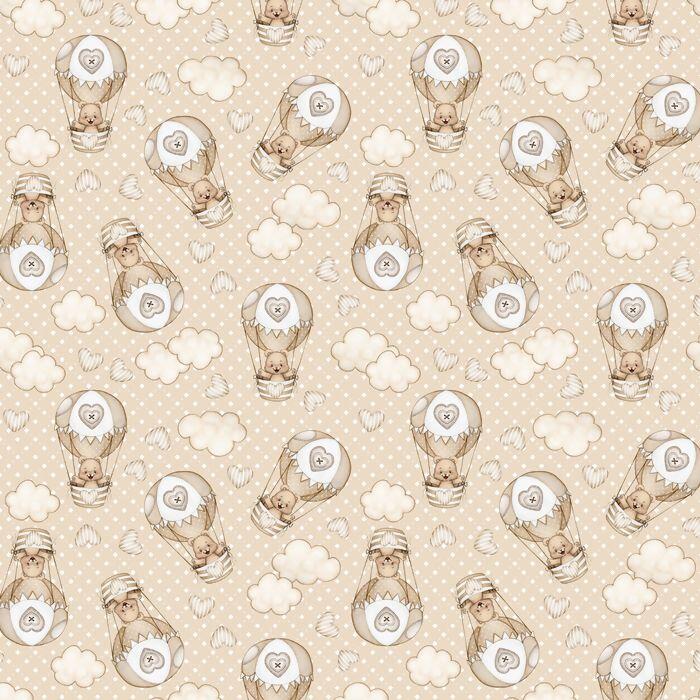 Tecido Tricoline Digital Balão e Nuvem Fundo Bege