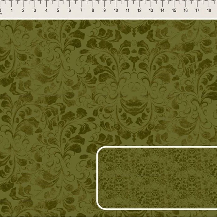 Tecido Tricoline Digital Baroque Arabesco Verde