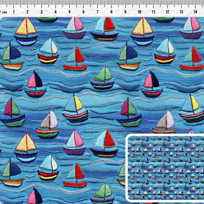Descrição Tecido Tricoline Digital Barquinhos Mar