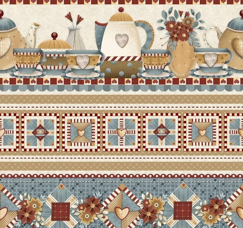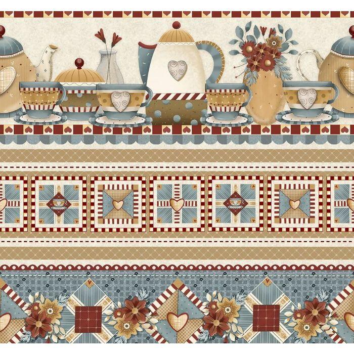 Descrição Tecido Tricoline Digital Barrado Amor e Café