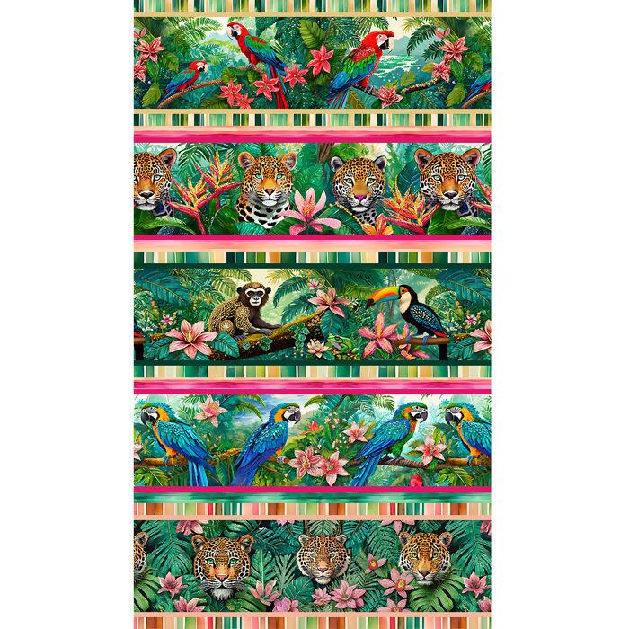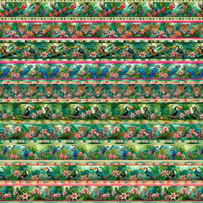 Tecido Tricoline Digital Barrado Animais Selvagens