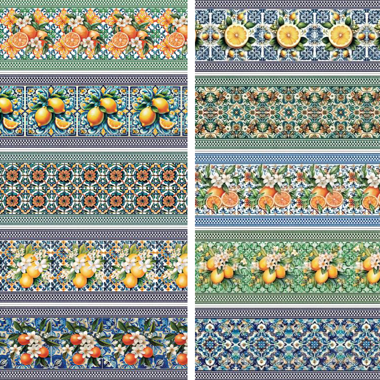 Descrição Tecido Tricoline Digital Barrado Azulejo Português