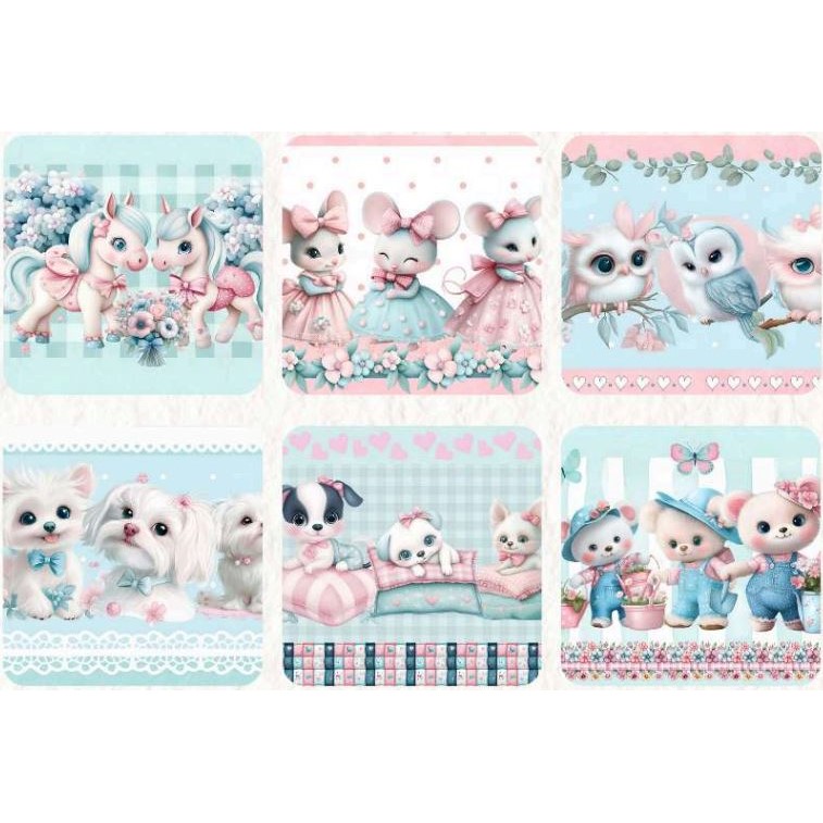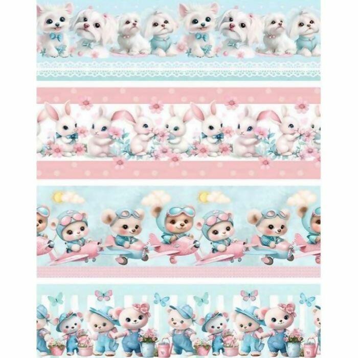 Tecido Tricoline Digital Barrado Bichinhos Fofos