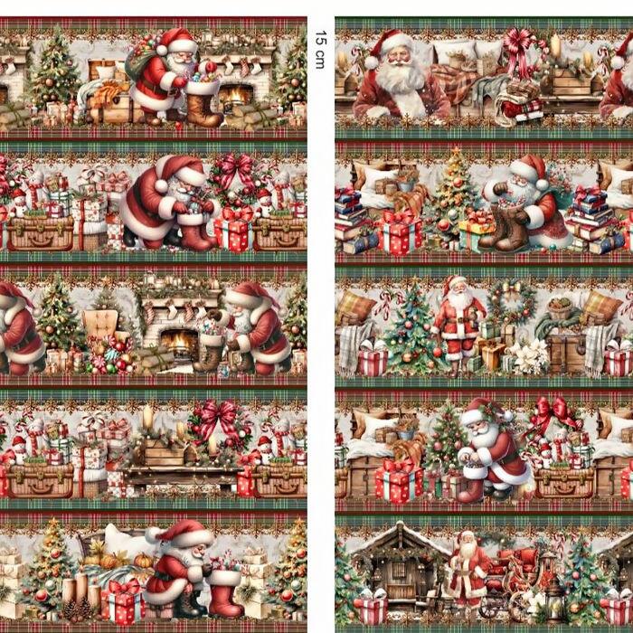Descrição Tecido Tricoline Digital Barrado Botas Papai Noel