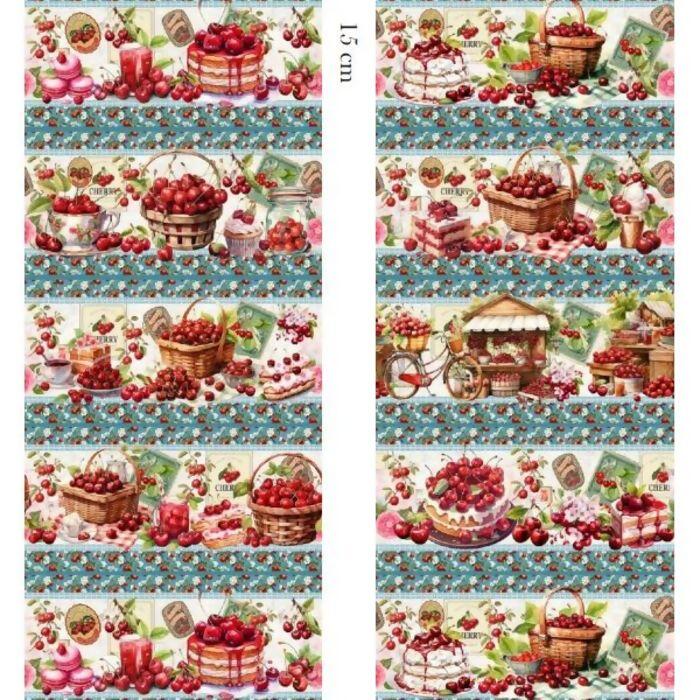 Descrição Tecido Tricoline Digital Barrado Cerejinhas