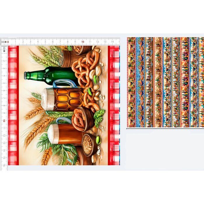 Descrição Tecido Tricoline Digital Barrado Churrasco e Cerveja