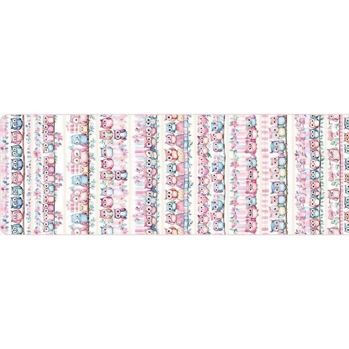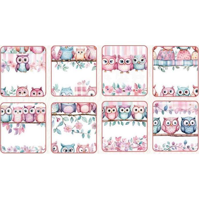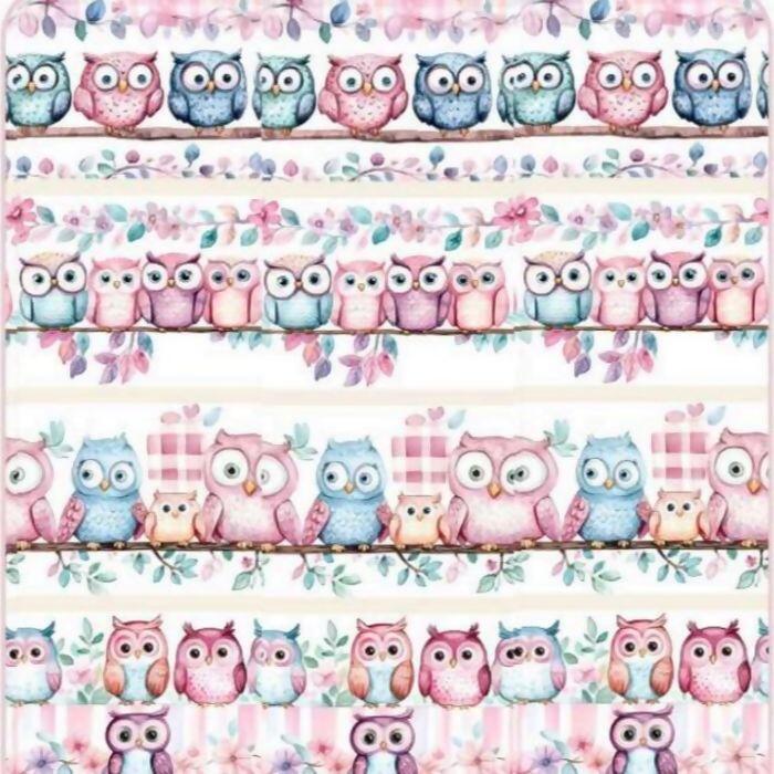 Tecido Tricoline Digital Barrado Corujas Aquareladas