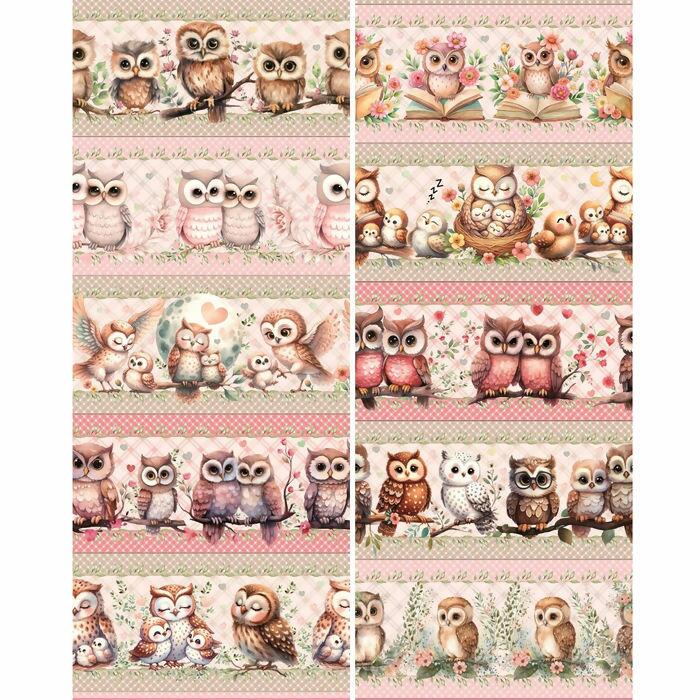Tecido Tricoline Digital Barrado Corujas no Galho