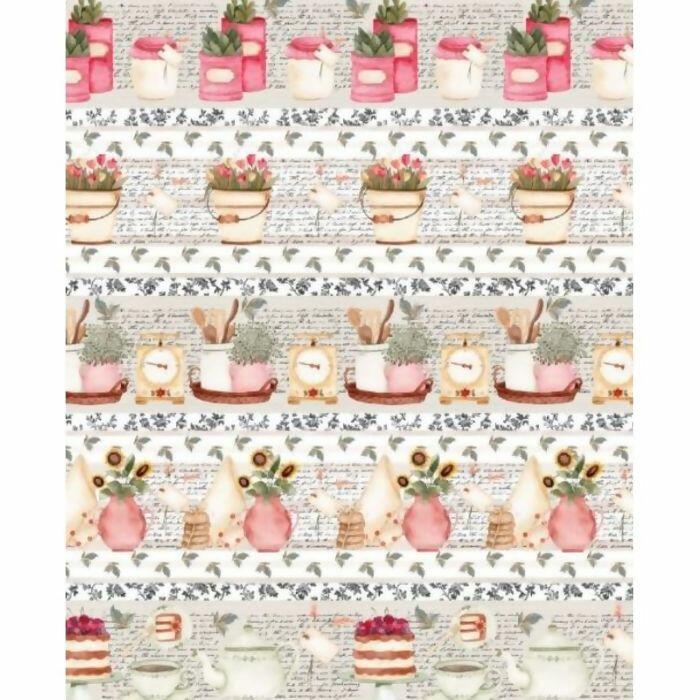 Descrição Tecido Tricoline Digital Barrado Country Kitchen