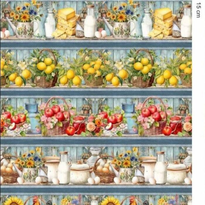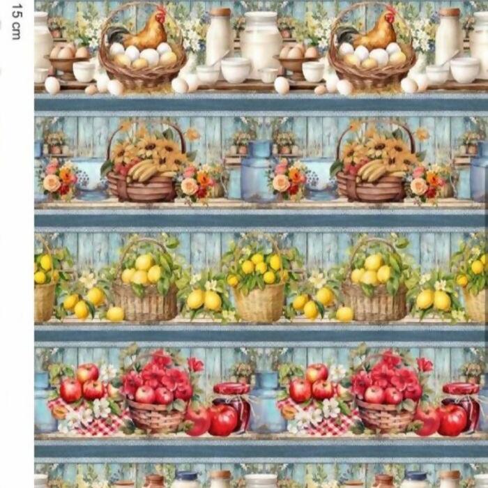 Tecido Tricoline Digital Barrado Cozinha de Fazenda