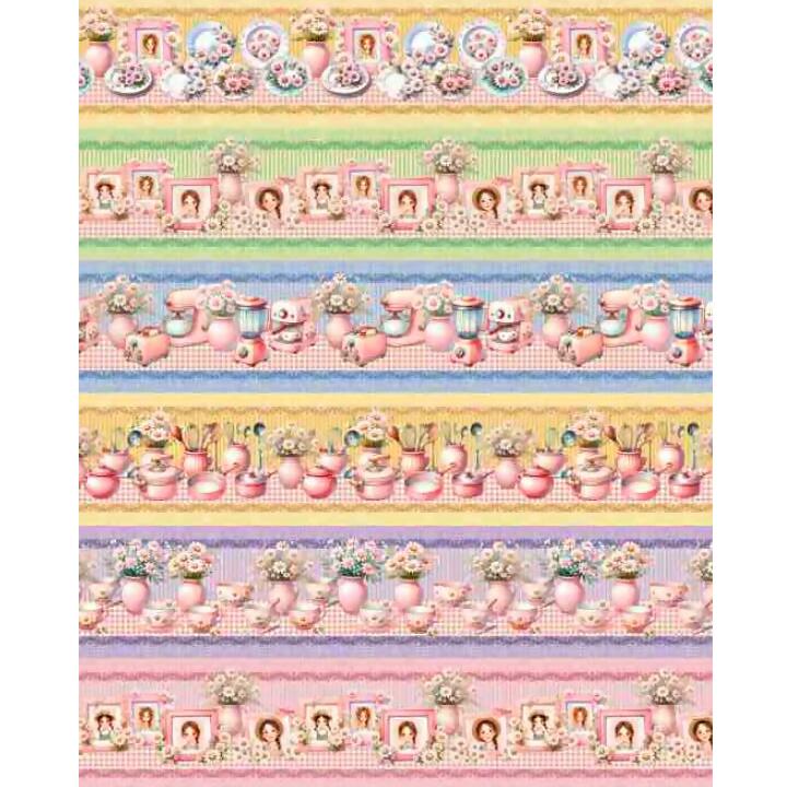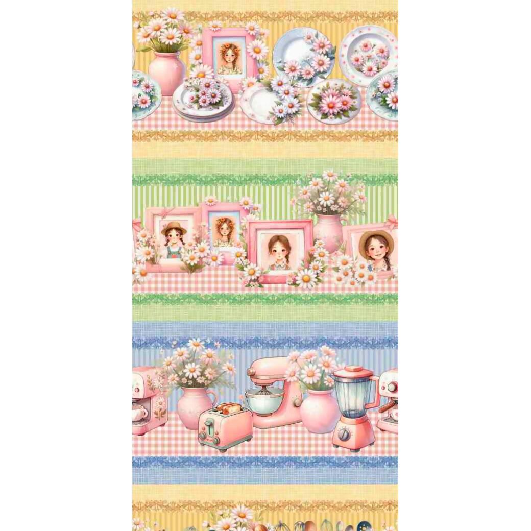 Descrição Tecido Tricoline Digital Barrado Cozinha Retrô