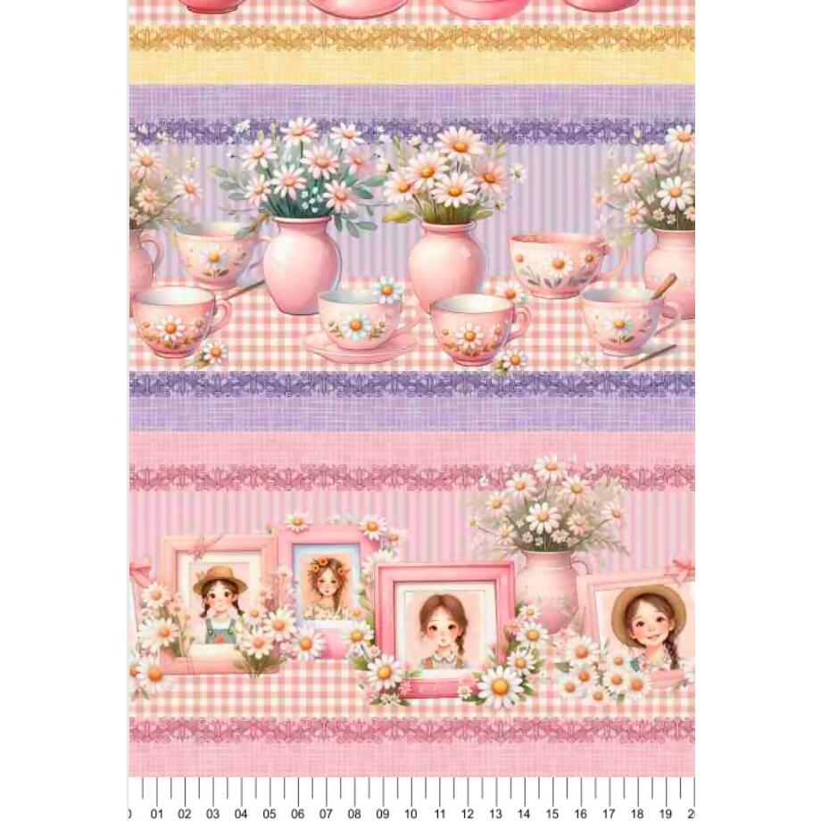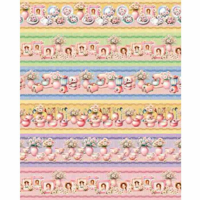 Tecido Tricoline Digital Barrado Cozinha Retrô