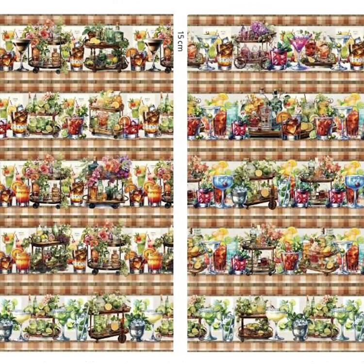 Descrição Tecido Tricoline Digital Barrado Drinks