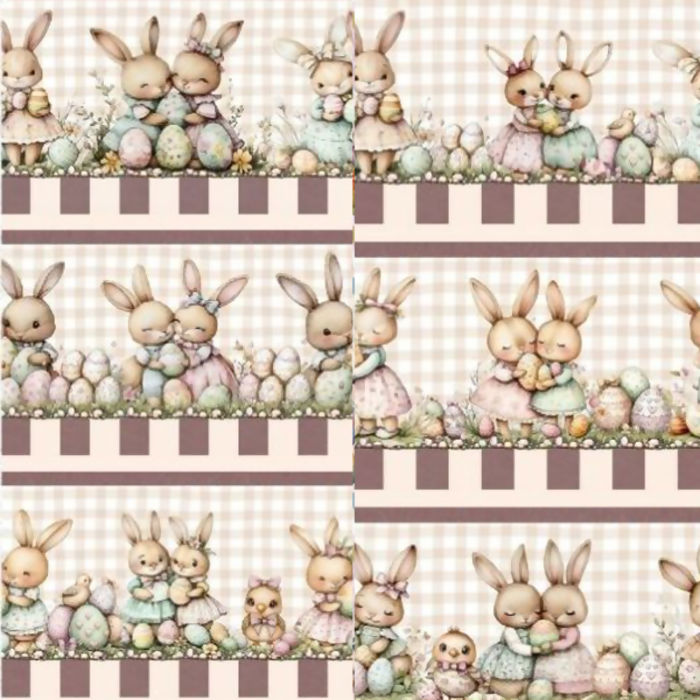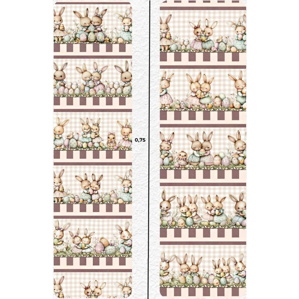 Tecido Tricoline Digital Barrado Dupla de Coelhos