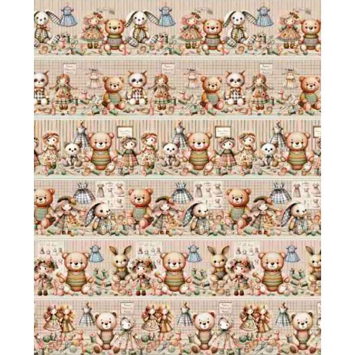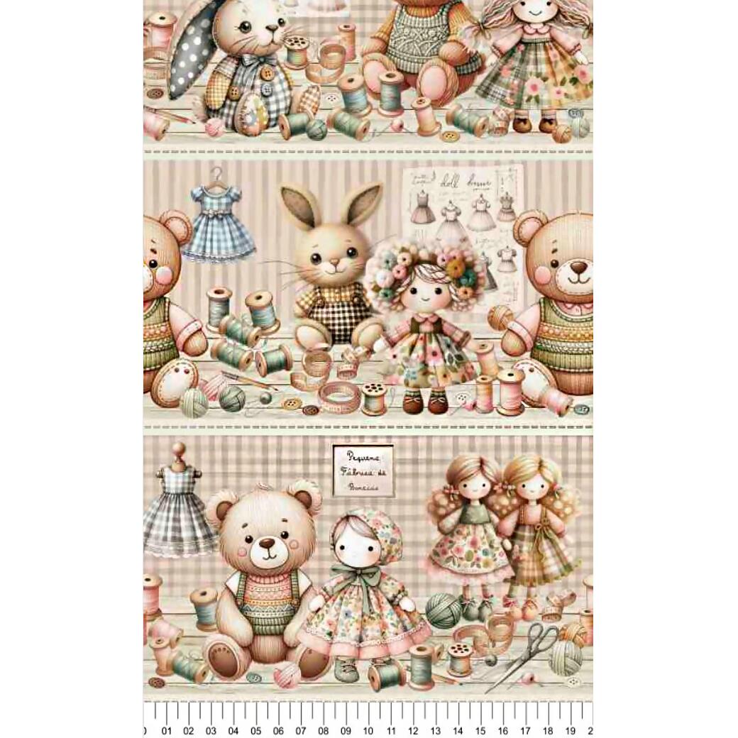 Tecido Tricoline Digital Barrado Fábrica de Bonecas