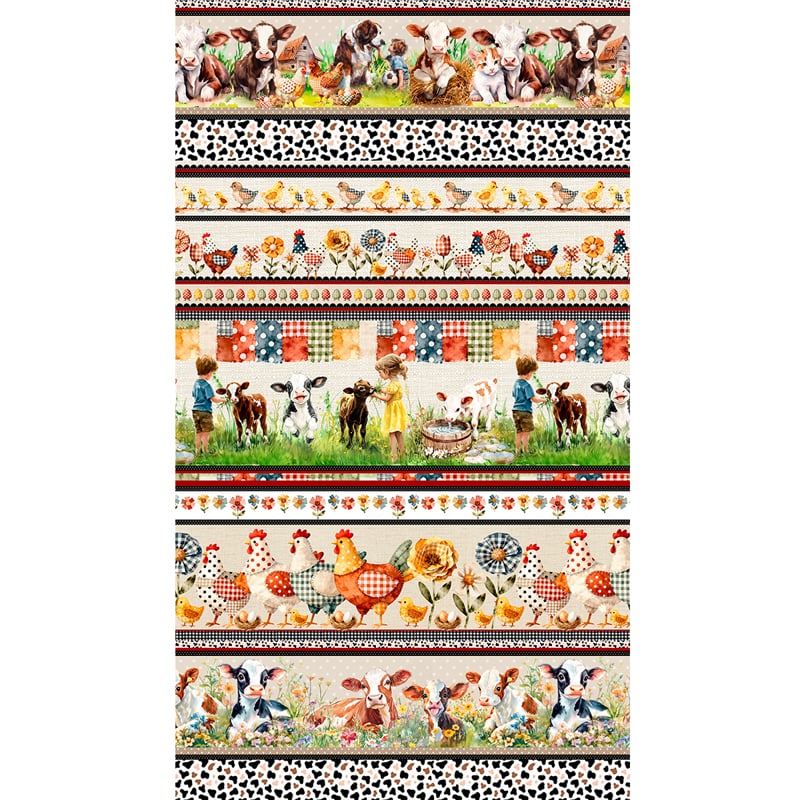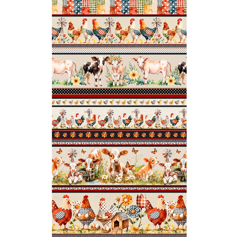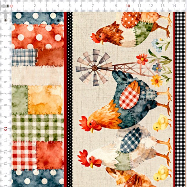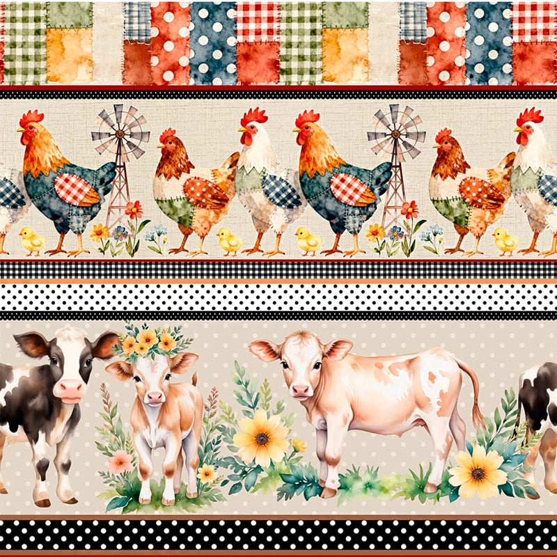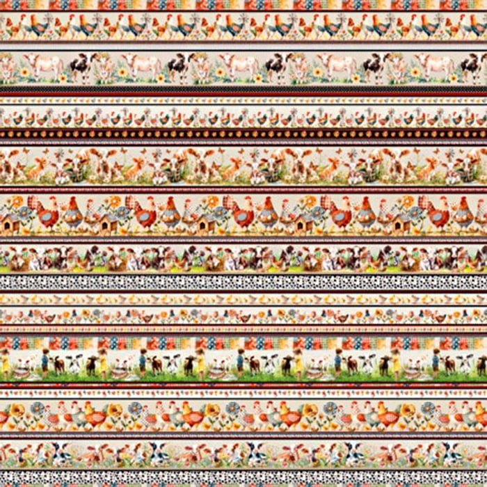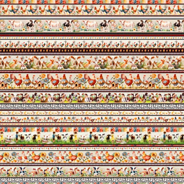 Tecido Tricoline Digital Barrado Fazenda Animais
