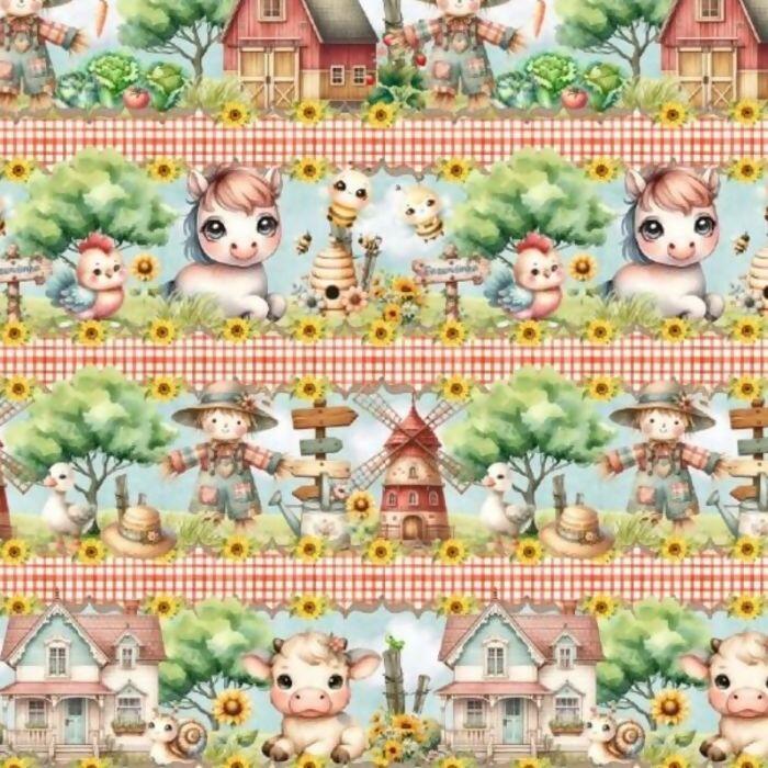 Descrição Tecido Tricoline Digital Barrado Fazendinha
