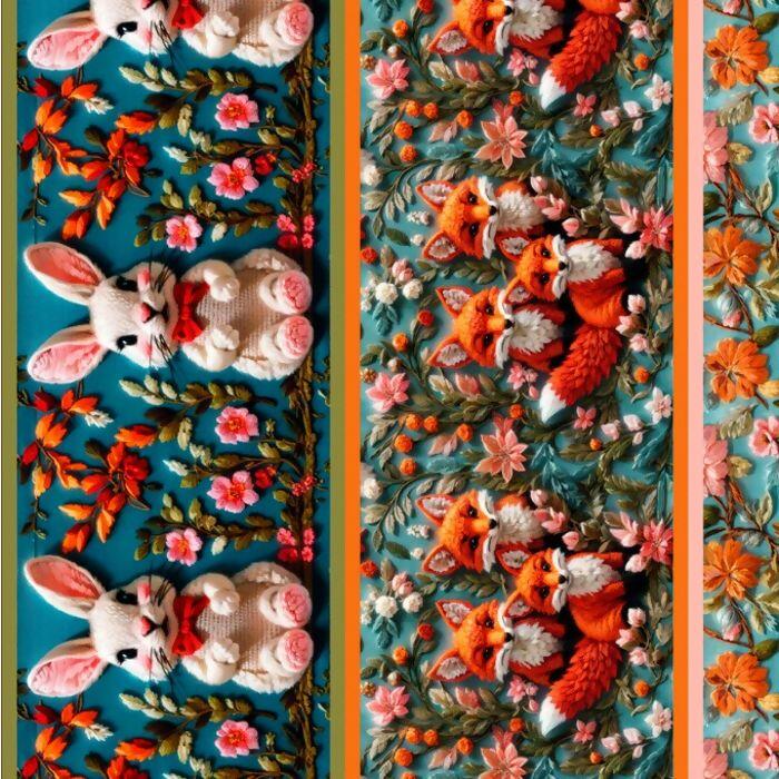 Descrição Tecido Tricoline Digital Barrado Floral Animais
