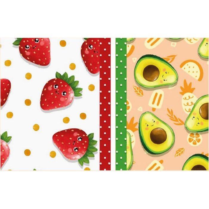Tecido Tricoline Digital Barrado Frutas Animadas