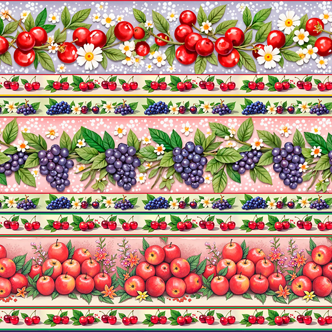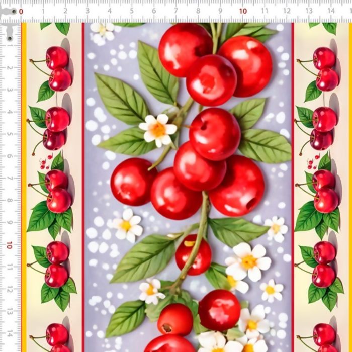 Descrição Tecido Tricoline Digital Barrado Frutas Colorido