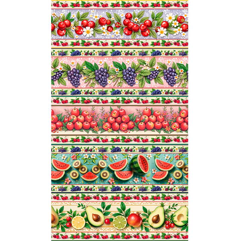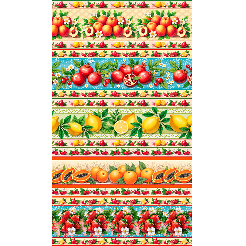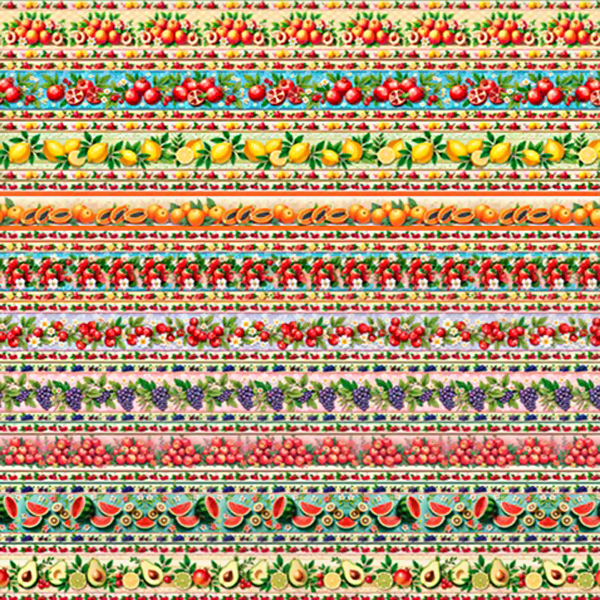 Tecido Tricoline Digital Barrado Frutas Colorido