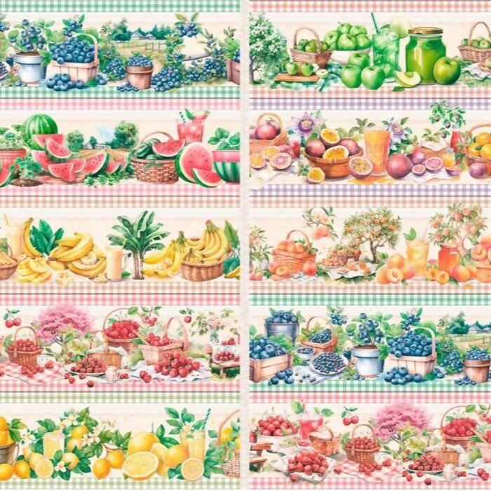 Descrição Tecido Tricoline Digital Barrado Frutas Encantadas