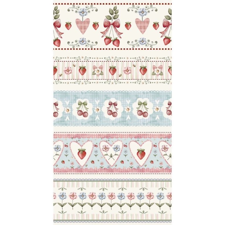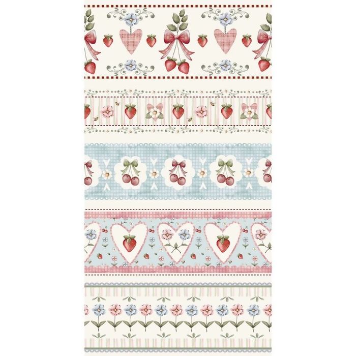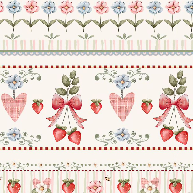 Tecido Tricoline Digital Barrado Frutas Vermelhas