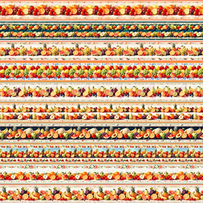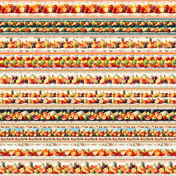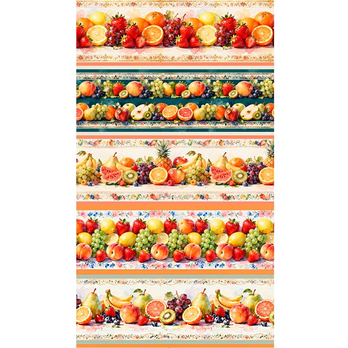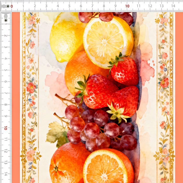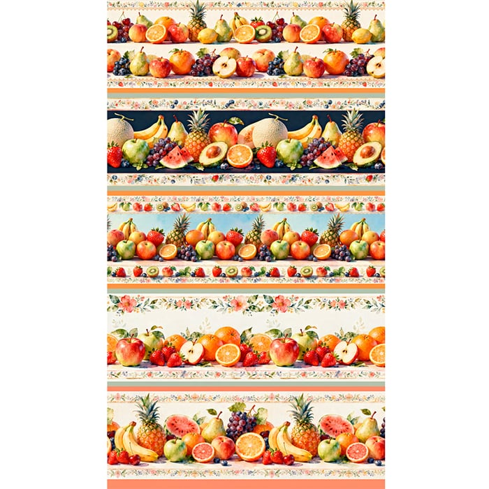 Descrição Tecido Tricoline Digital Barrado Frutas