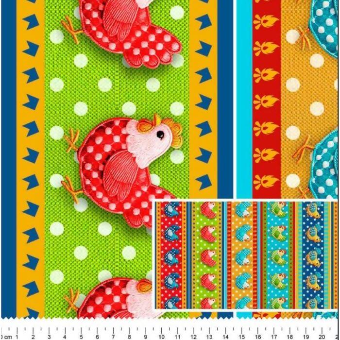 Tecido Tricoline Digital Barrado Galinha Pintadinha