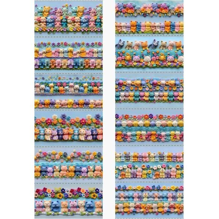 Descrição Tecido Tricoline Digital Barrado Gatinhos Coloridos