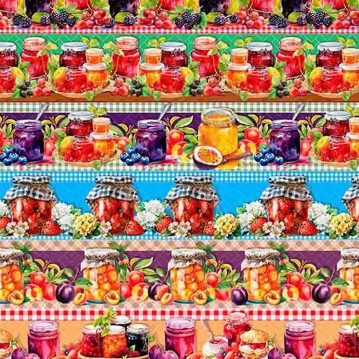 Descrição Tecido Tricoline Digital Barrado Geléias