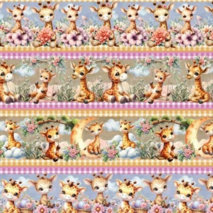 Tecido Tricoline Digital Barrado Girafinhas