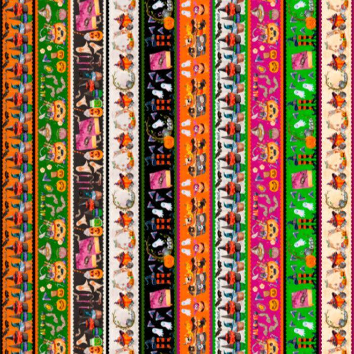 Descrição Tecido Tricoline Digital Barrado Halloween