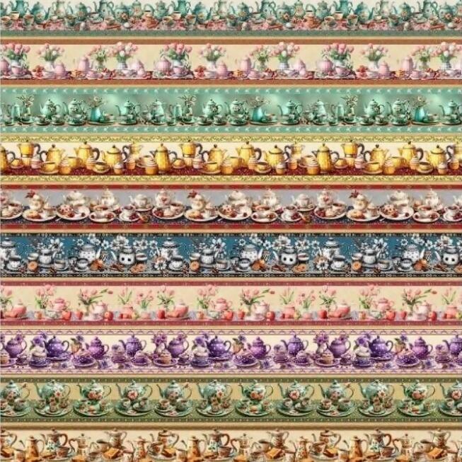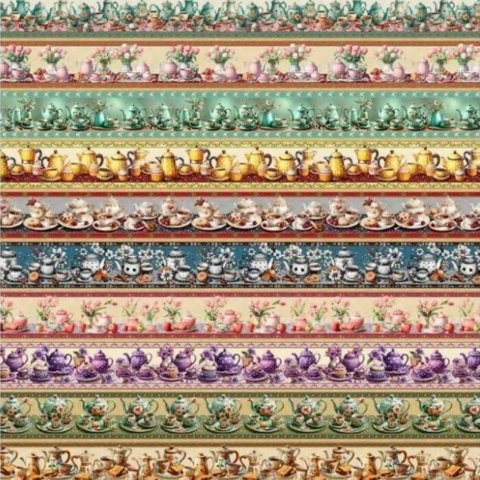 Tecido Tricoline Digital Barrado Jogo de Porcelana