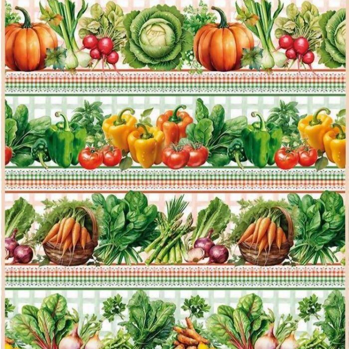 Descrição Tecido Tricoline Digital Barrado Legumes
