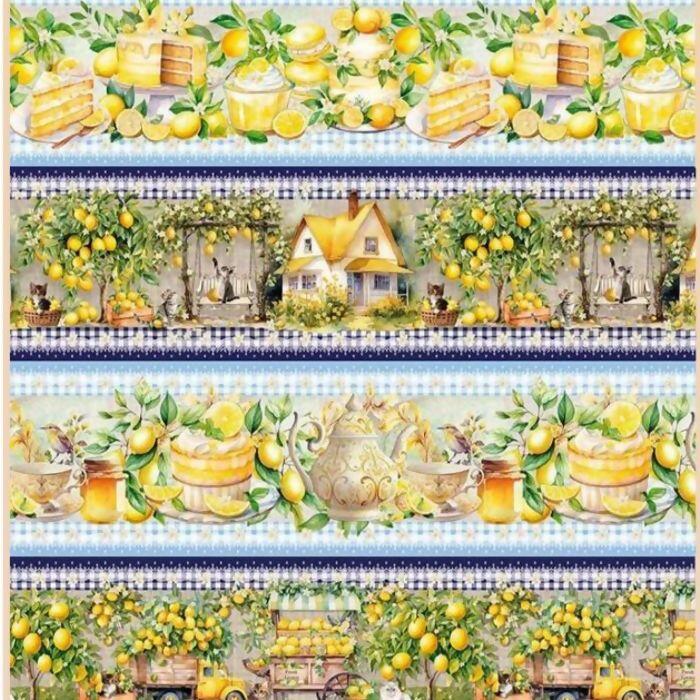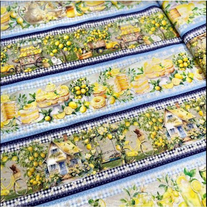 Tecido Tricoline Digital Barrado Limão Xadrez Azul