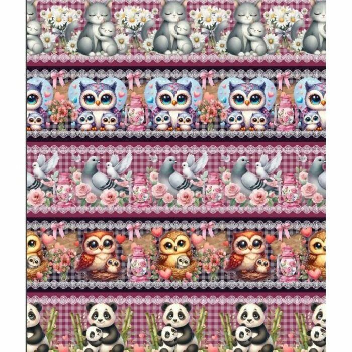 Tecido Tricoline Digital Barrado Mamãe Coruja